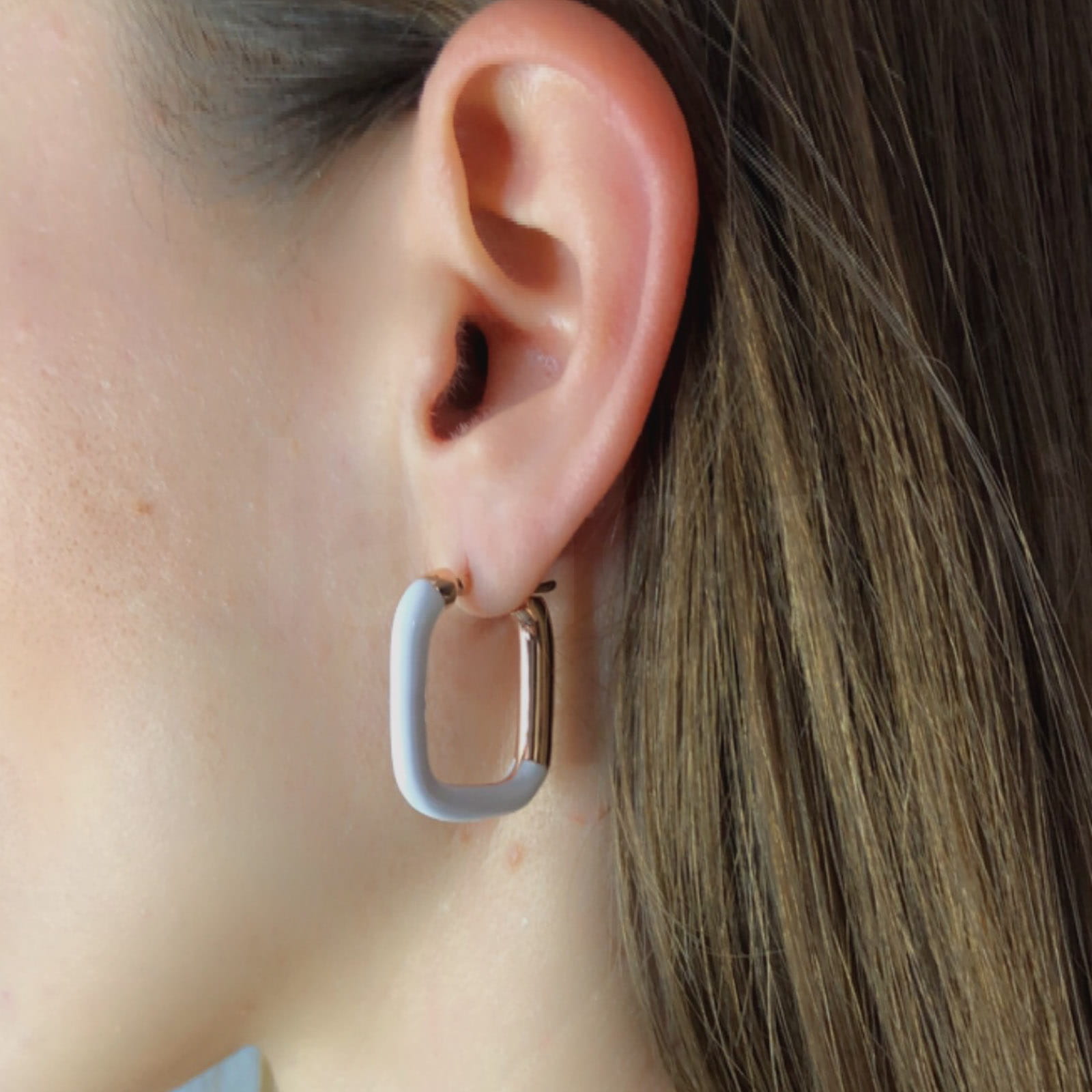 Kolczyki ze srebra 925 Emaliowane kremowe latte 21x27mm