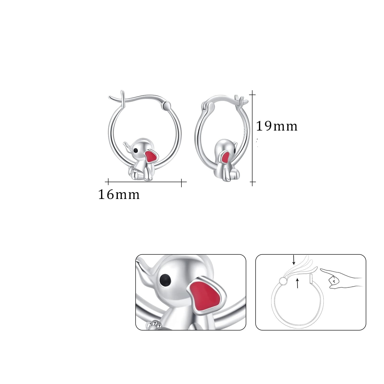 Kolczyki ze srebra 925 Słonie na szczęście