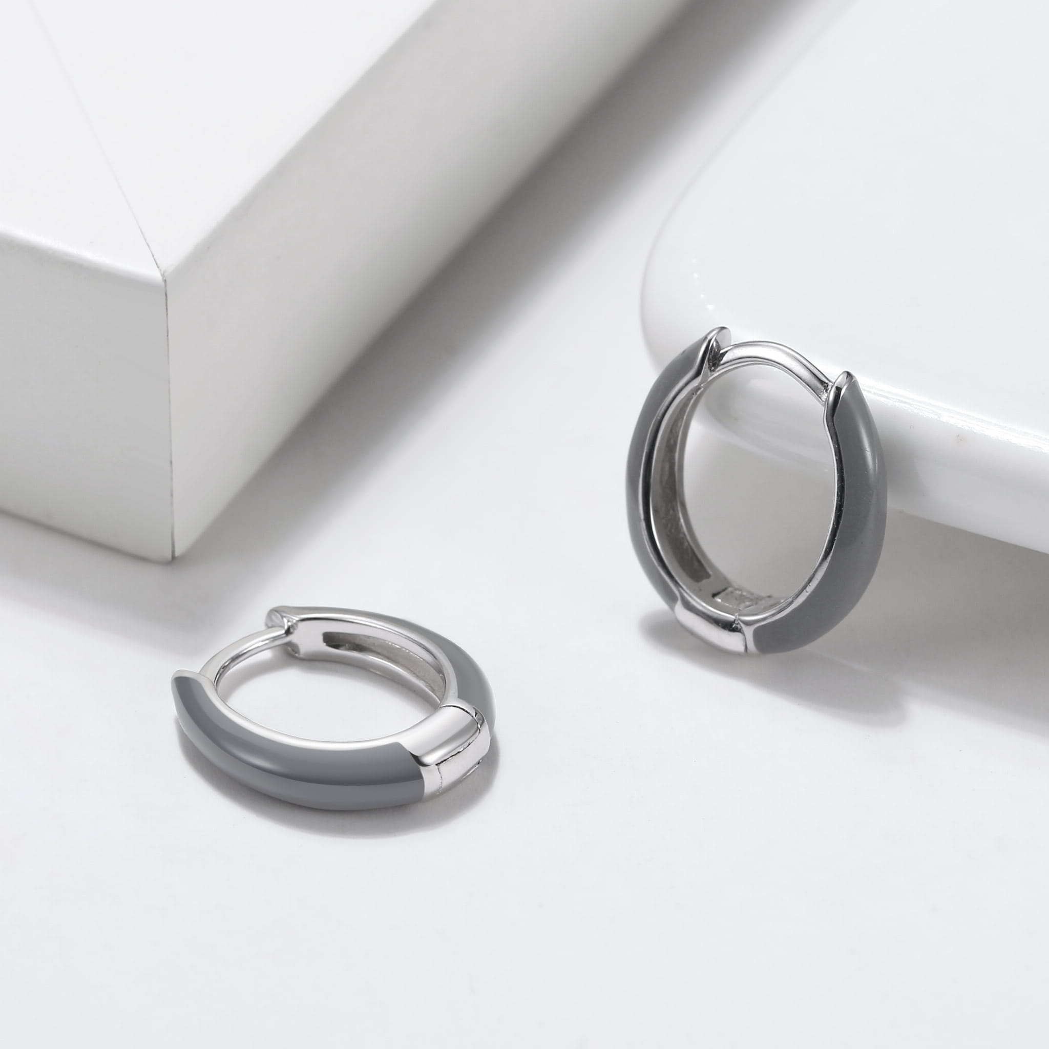 Kolczyki ze srebra 925 emaliowane szare