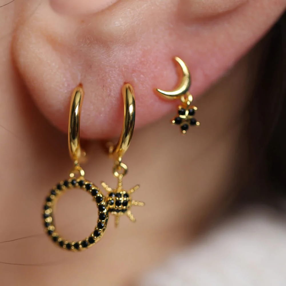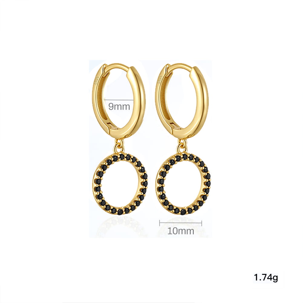 Kolczyki ze srebra 925 kółeczka z czarnymi cyrkoniami