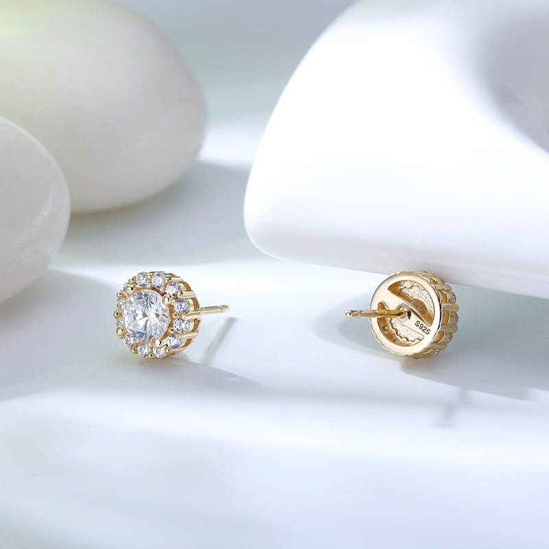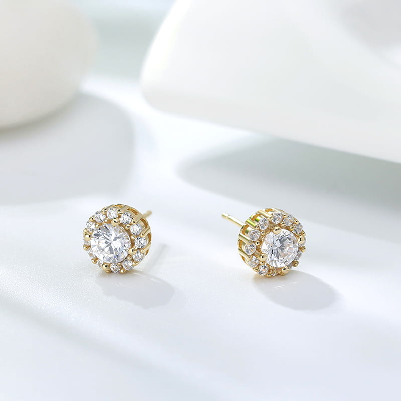 Kolczyki ze srebra 925 z białymi cyrkoniami w kolorze złotym