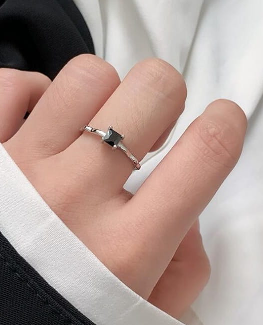 Regulowany Pierścionek ze srebra 925 Czarna cyrkonia