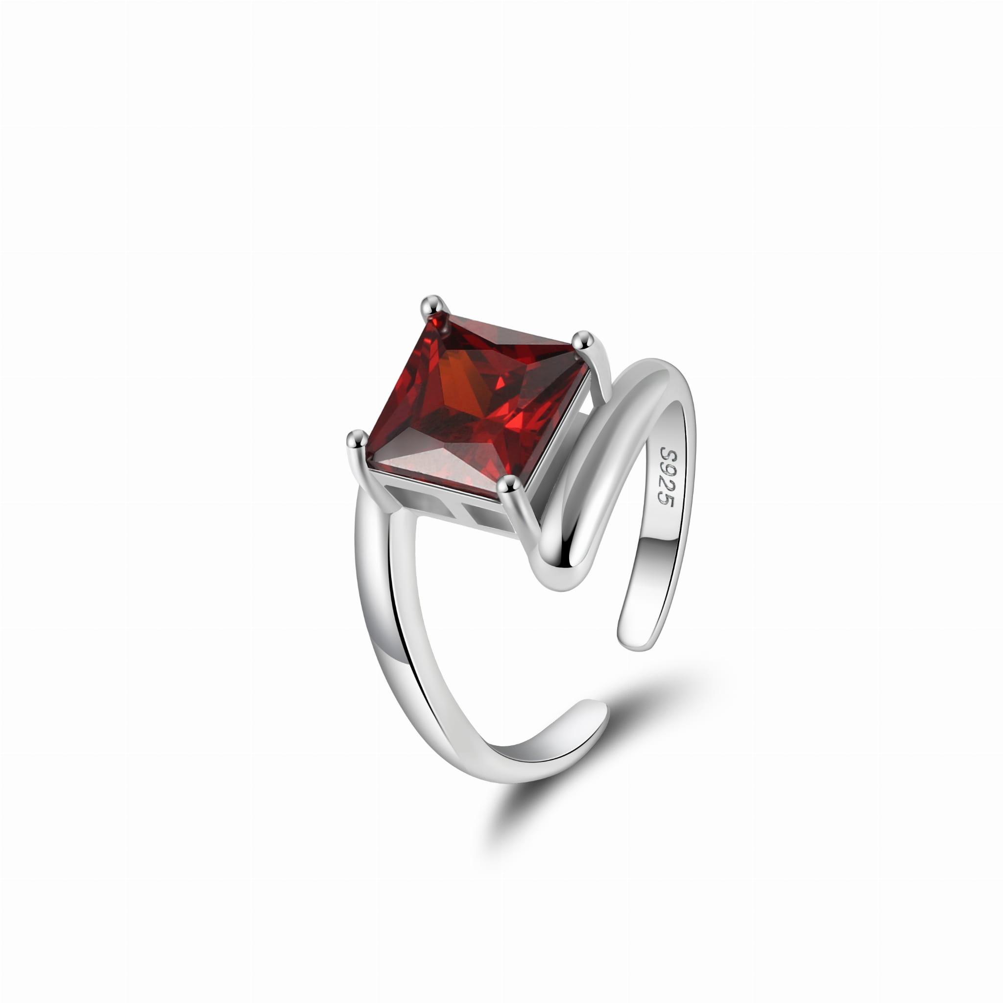 Regulowany Pierścionek ze srebra 925 Czerwona Cyrkonia