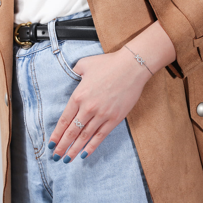 Regulowany Pierścionek ze srebra 925 Kwiatki