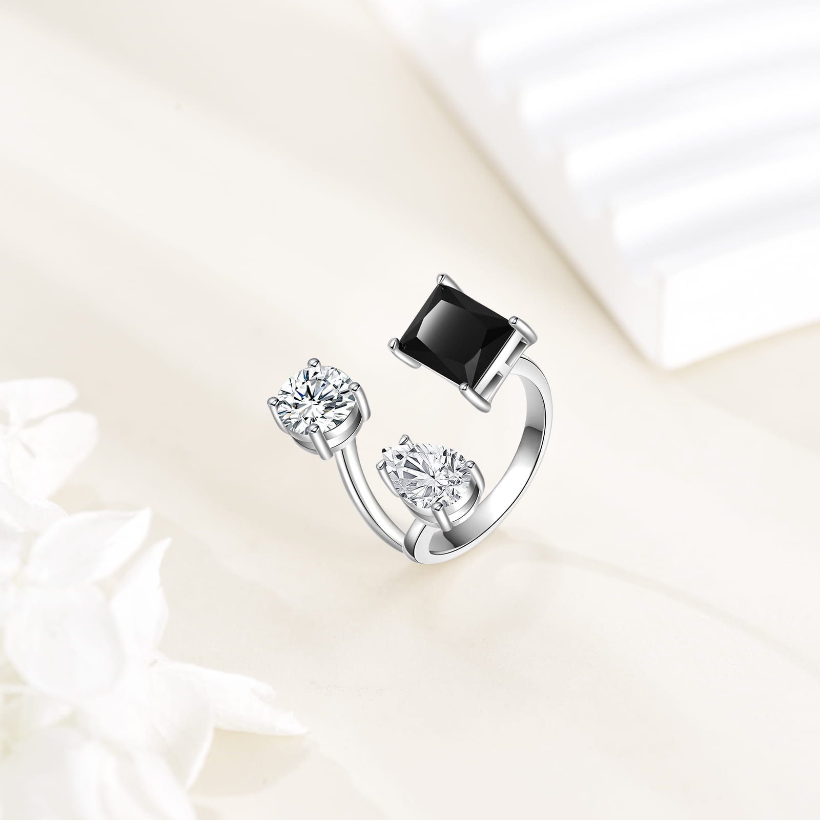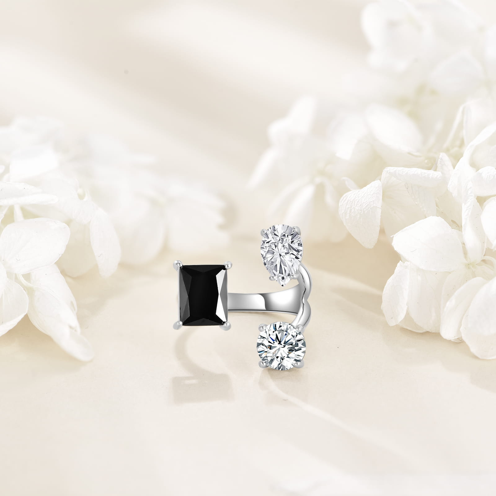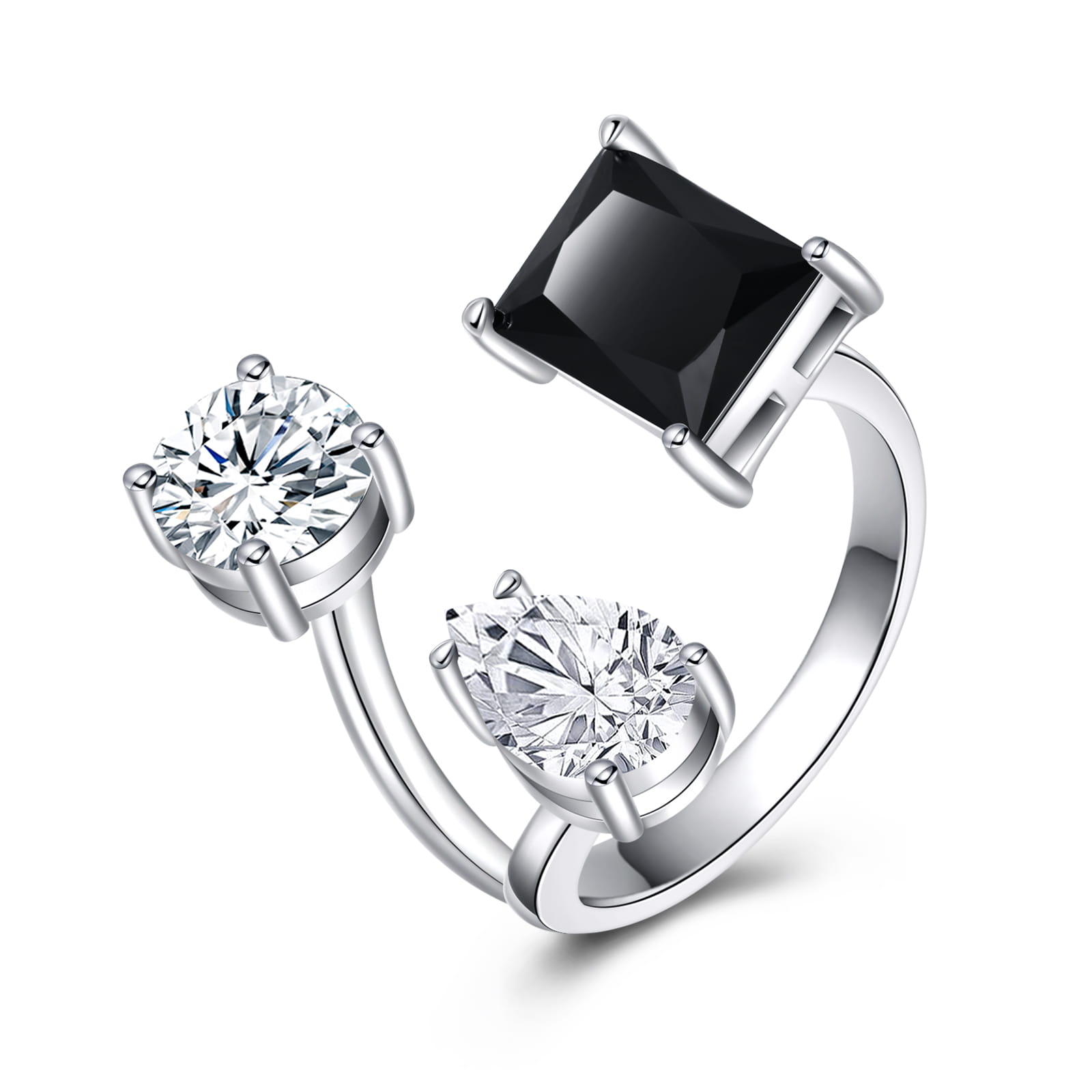 Regulowany pierścionek ze srebra 925, czarno-białe cyrkonie