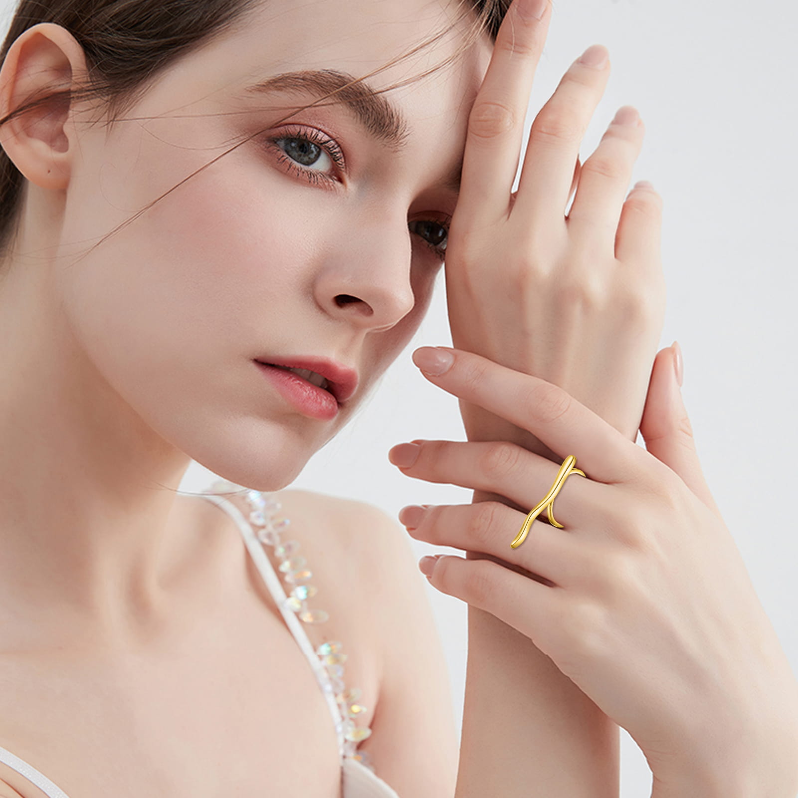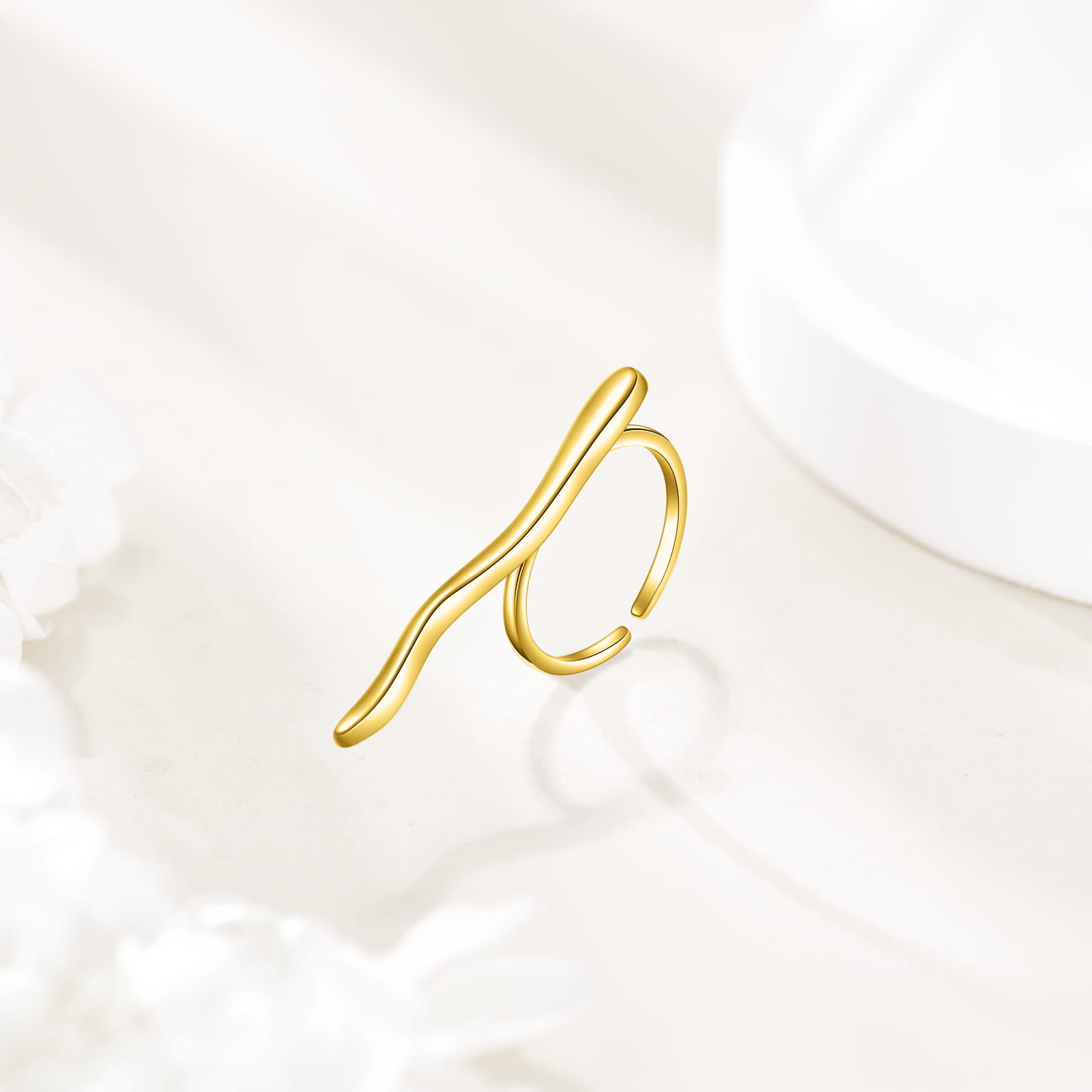 Regulowany pierścionek ze srebra 925, pozłacany