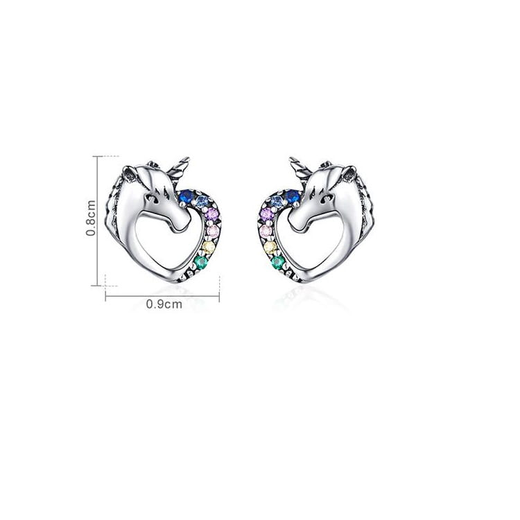 Delikatne srebrne kolczyki ze wzorem jednorożca z kolorowymi cyrkoniami. Jeden z naszych bestsellerów. Ich szerokość i długość to nie cały 1cm. Są bardzo lekkie i zapinane na sztyft. Każdy nasz produkt wysyłany jest w opakowaniu prezentowym.