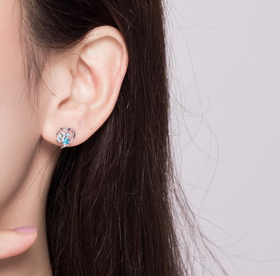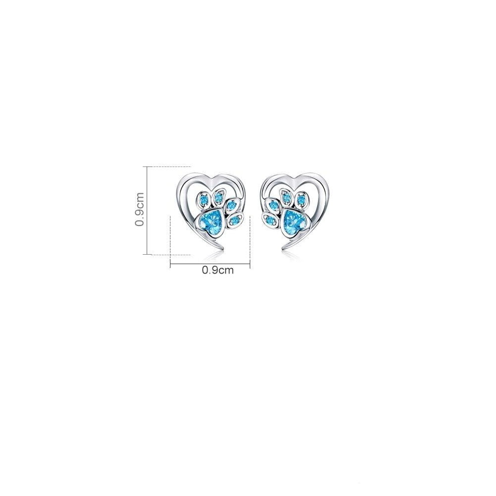 Kolczyki łapki wykonane z wysokiej jakości srebra próby 925. Wzór o interesującym kształcie srebrnego serduszka z łapką czworonoga, ozdobiony niebieskimi cyrkoniami. Kolczyki charakteryzują się wyjątkową delikatnością. Para kolczyków zapinana jest na wygodny sztyft.
