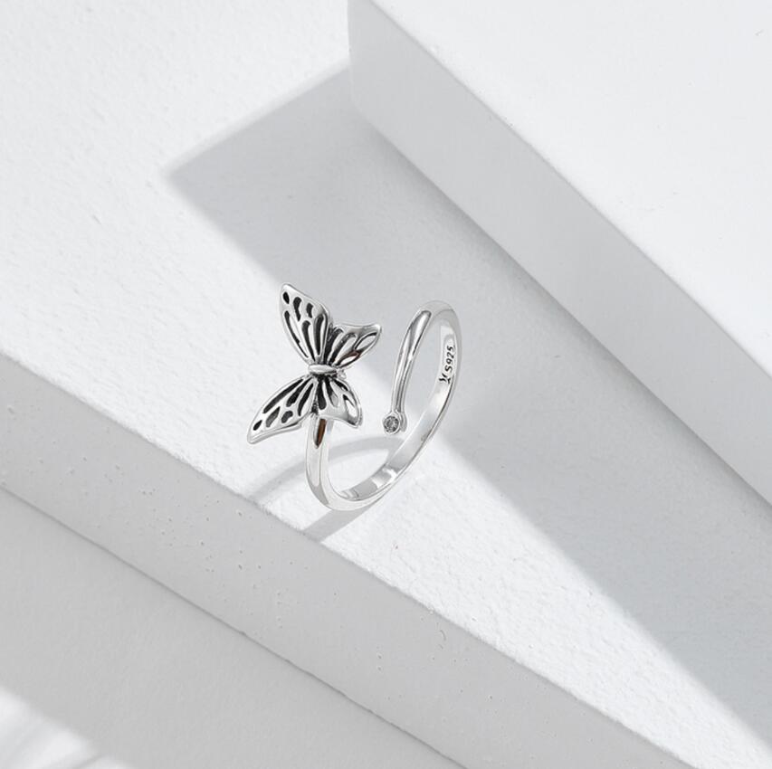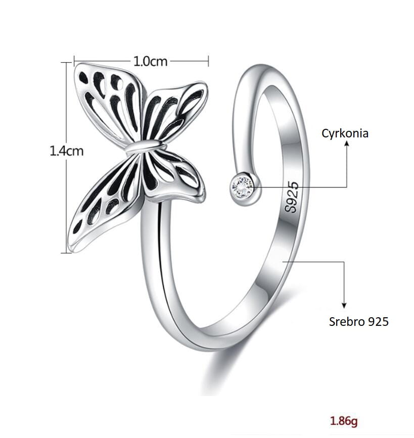 Uniwersalny pierścionek ze srebra 925 Motyl